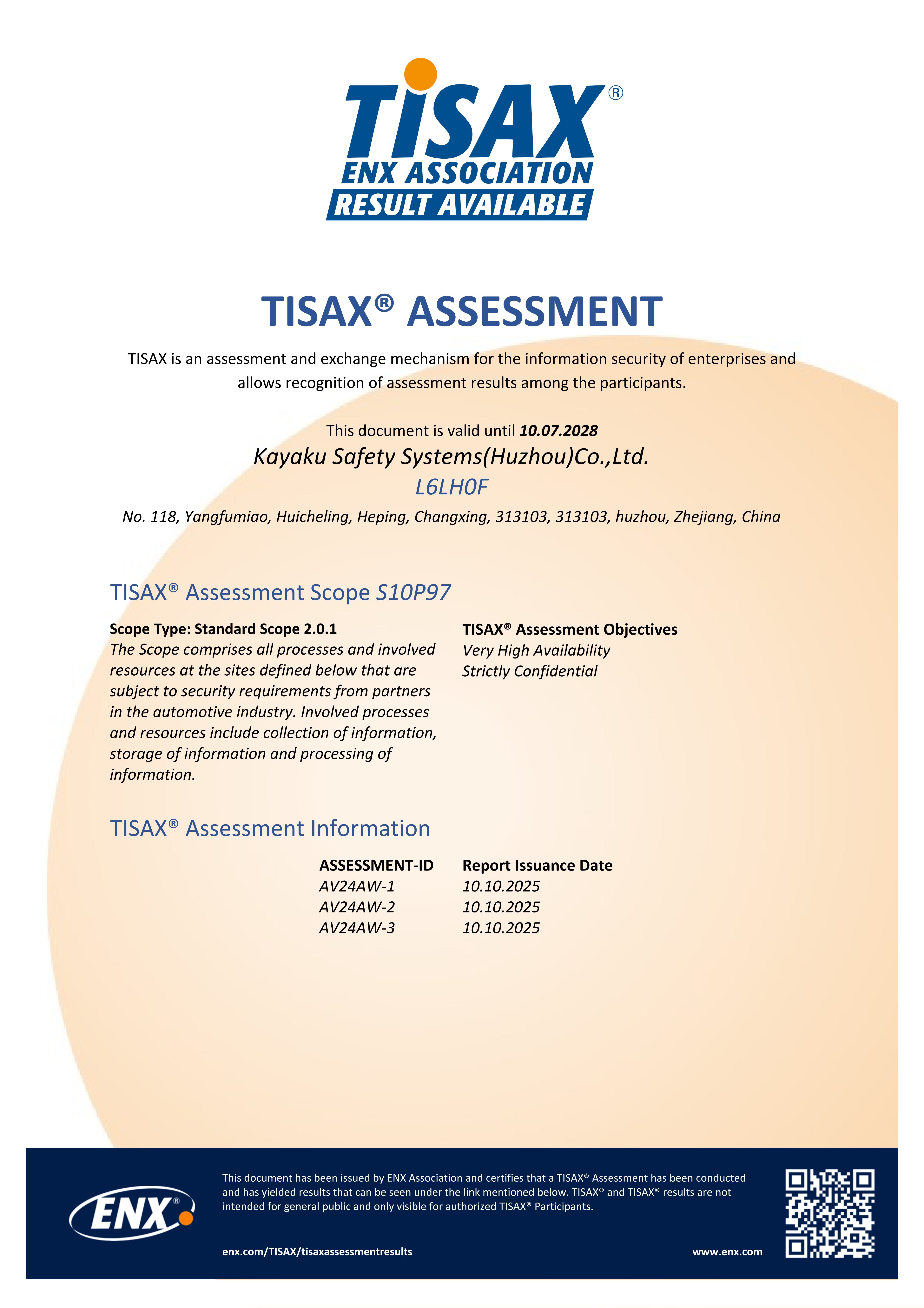 化药(湖州)安全器材有限公司Kayaku Safety Systems Huzhou(KSH)于2006年在浙江省湖州市长兴县和平镇设立,旨在向全中国提供运用了超过100年创业历史的日本化药株式会社“火药”技术的汽车用安全零件。